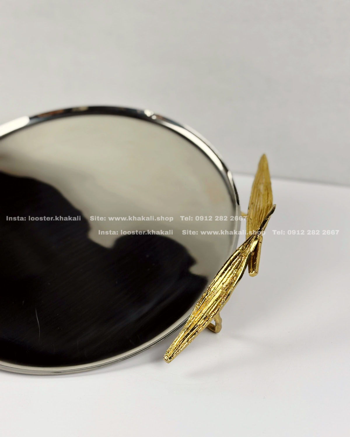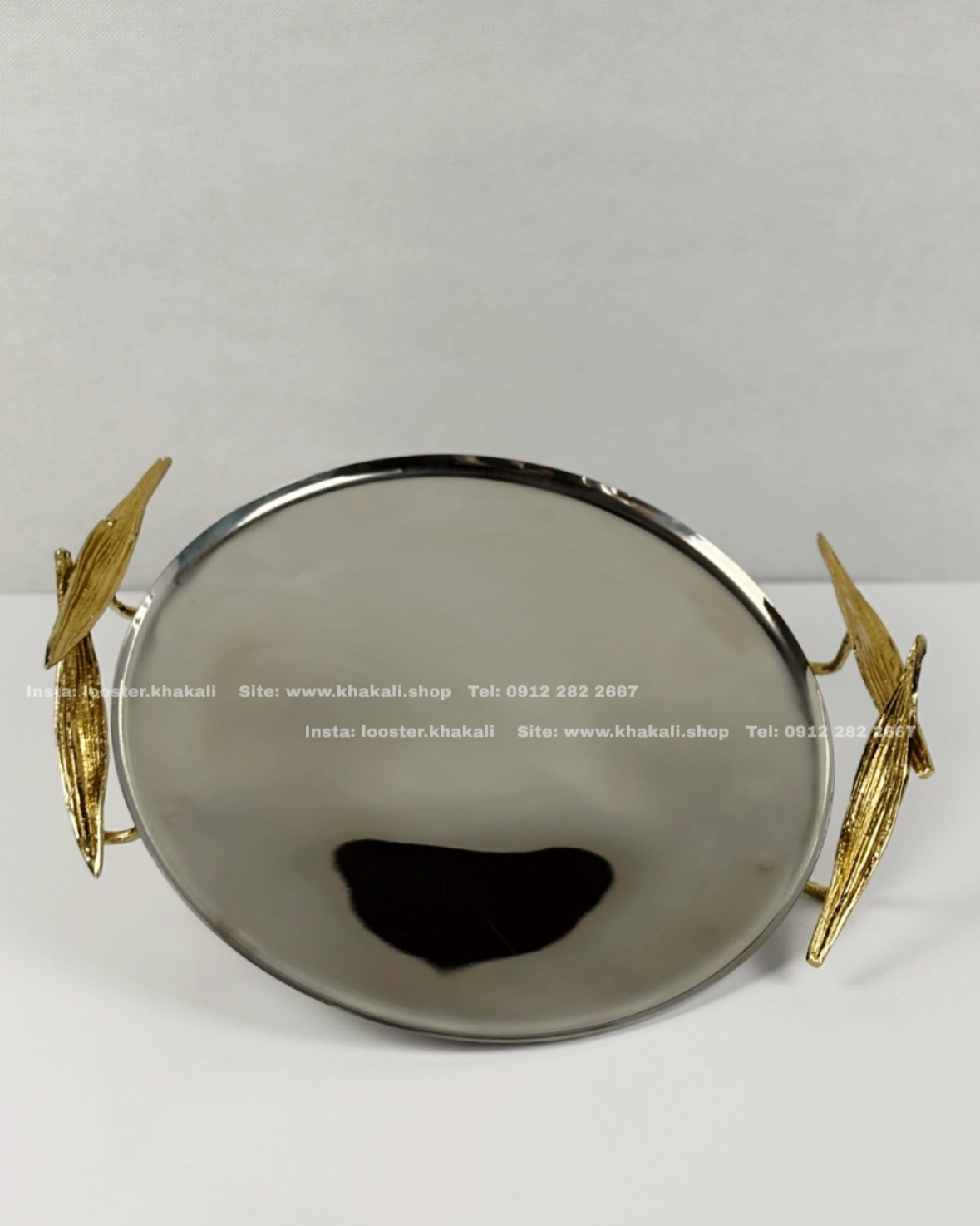 سینی دکوری استیل با دستههای برنجی | ترکیب هنر و کیفیت