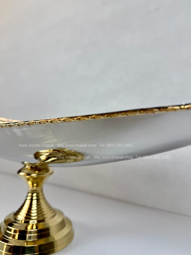 کشکول پایهدار وارداتی هندی ساخته شده از استیل برنج با ترکیب رنگ نقرهای و طلایی، انتخابی زیبا و بادوام برای میز پذیرایی شماست.