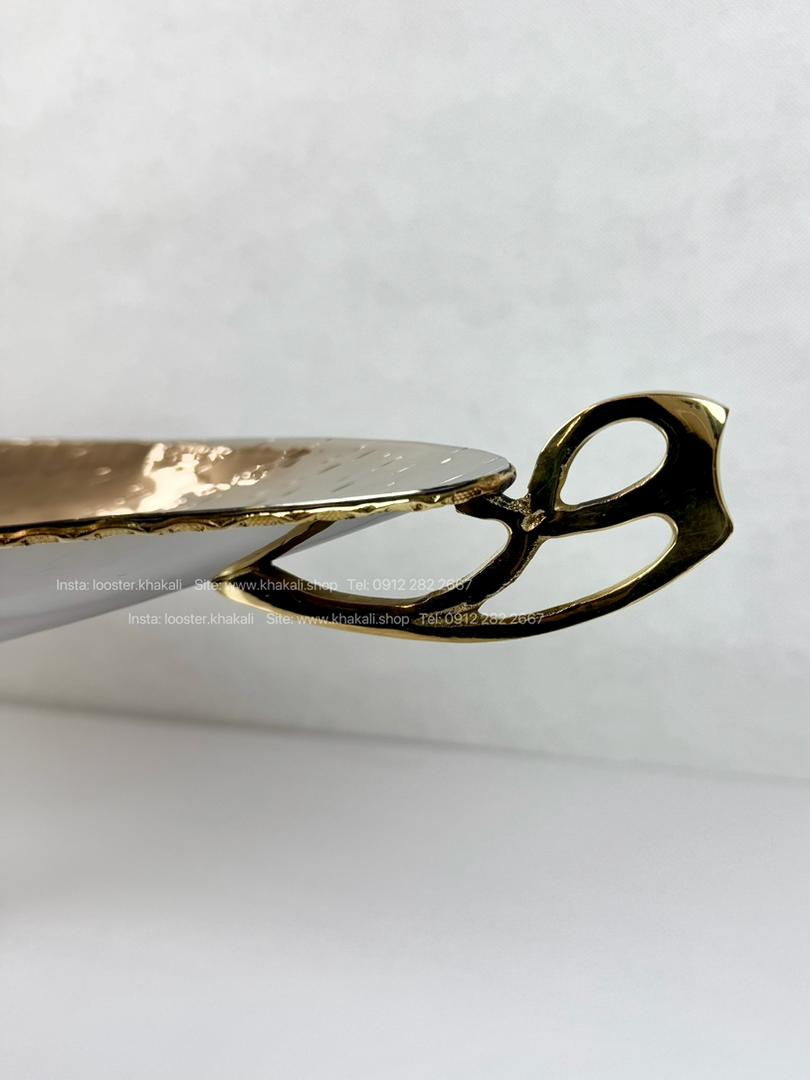 طراحی دستههای ظریف در دو طرف و پایهی طلایی براق، علاوه بر استحکام، جلوهای لوکس و اصیل به این ظرف بخشیده است.