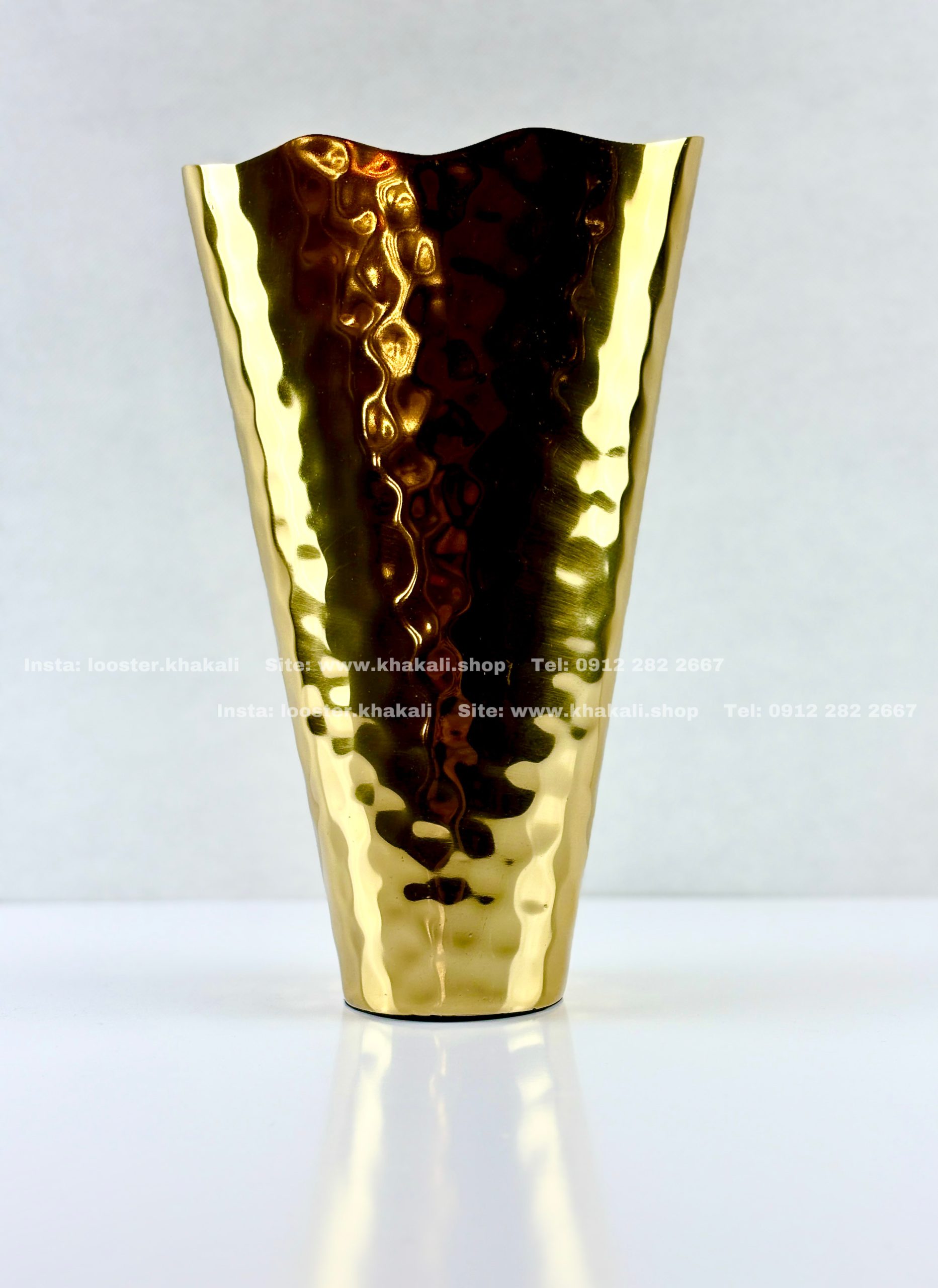 گلدان وارداتی مخروطی کوچک طلایی